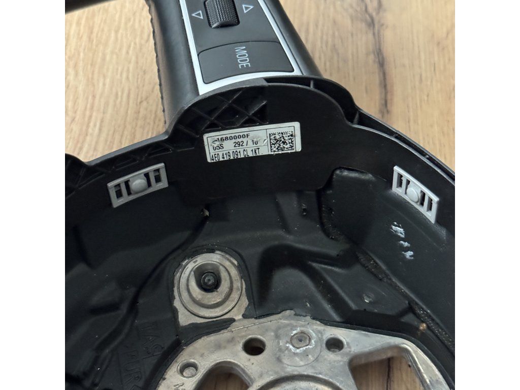 Originální multifunkční volant s OEM číslem 4E0419091CL (4E0 419 091 CL). 4-ramenný, kůže, černá barva. Multifunkční tlačítka pro ovládání palubního počítače, rádia a telefonu. Bez pádel F1, bez vyhřívání. Facelift. Vhodné pro Audi A3, A4, A5, A6, Q7. OEM: 4E0 419 091 CL.
