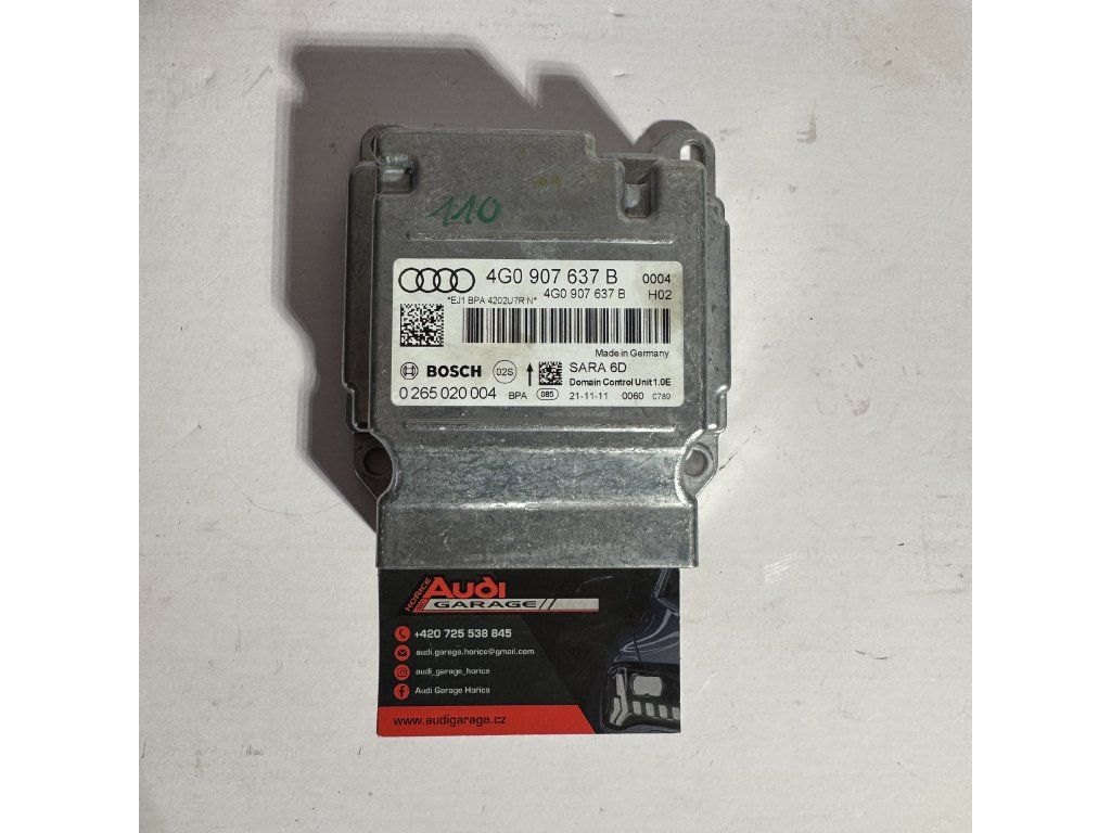 Použitá originální řídící jednotka airbagů SARA 6D Domain Control Unit 1.0E. Číslo dílu: 4G0 907 637 B. Výrobce: Bosch (0 265 020 004). Made in Germany. Vhodné pro Audi A6 C7 (4G) a Audi A7 (4G).